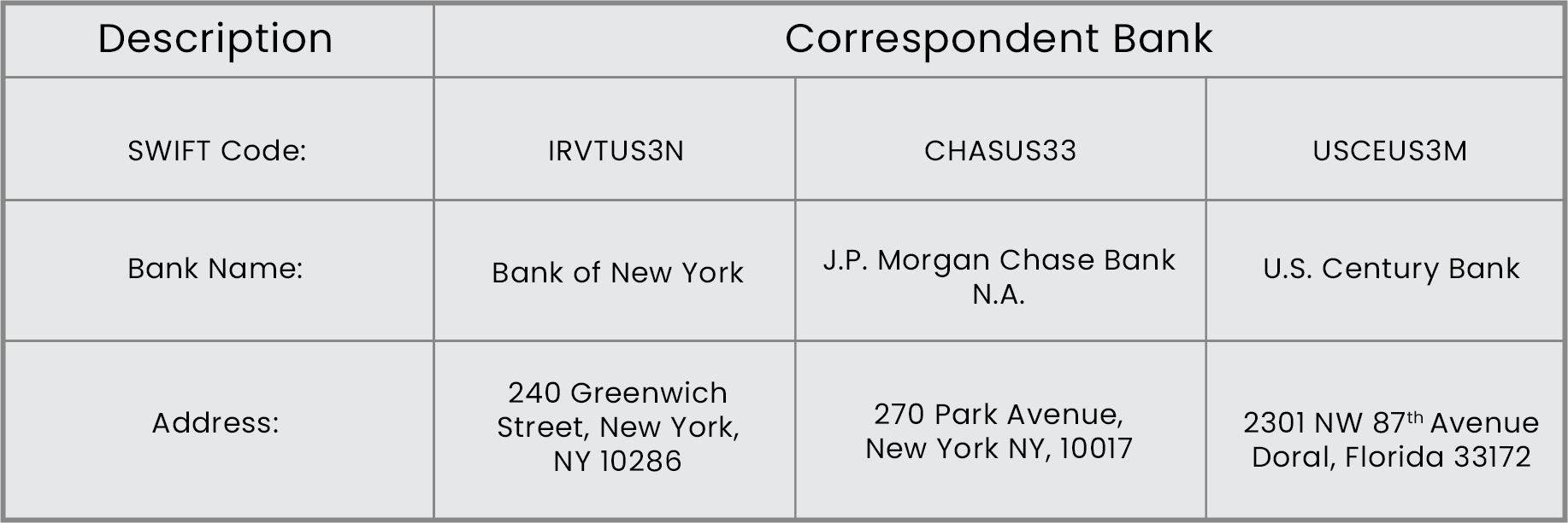 Transfers can be routed to Atlantic Bank via any of our correspondent banks.